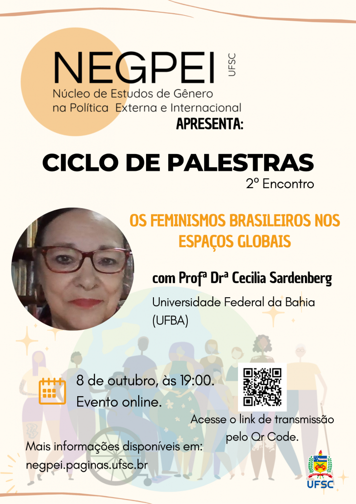 Os feminismos brasileiros nos espaços globais, com Profª Dra. Cecilia Sardenberg. 08/10, às 19:00.  Sardenberg, Cecilia (2015) Brazilian feminisms in global spaces: Beijing and Beijing+20.’ IDS Bulletin, Institute of Development Studies, v.46, p.115 – 122. Disponível no link.